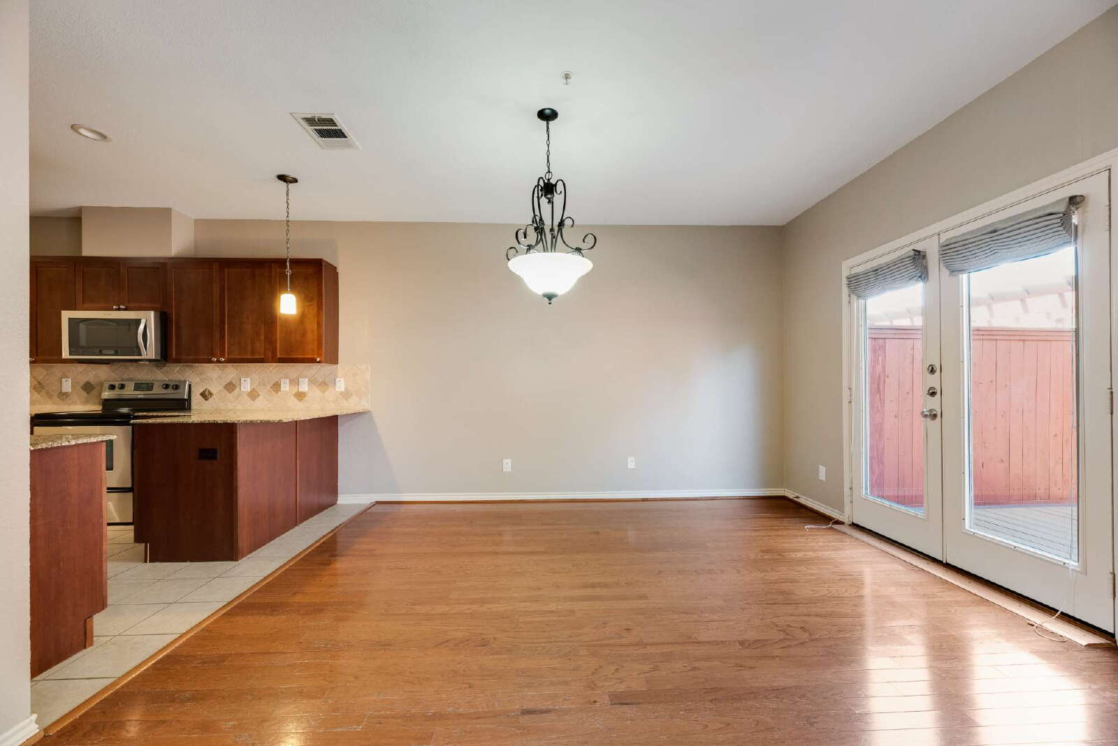 Stunning low maintenance DOG FRIENDLY townhome situated in the heart of Plano. Enjoy the vaulted ceiling downstairs and sweeping hardwood floors invite you inside this beautifully updated home. A light filled living room opens to a spacious dining and fully equipped kitchen. Enjoy preparing home-cooked meals with stainless steel Whirlpool microwave and range, granite counter-tops, and an abundance of cabinets. The primary suite with a with a Juliette balcony includes a gorgeous en suite with dual sinks, separate standing shower and soaking tub, along with a large walk-in closet, granite counter-tops. Two good sized secondary bedrooms share an updated bath. The AC unit providing energy efficiency and comfort. Community amenities include an on-site pool, basketball court, and dog parks Easy access to highways, shopping and entertainment.
